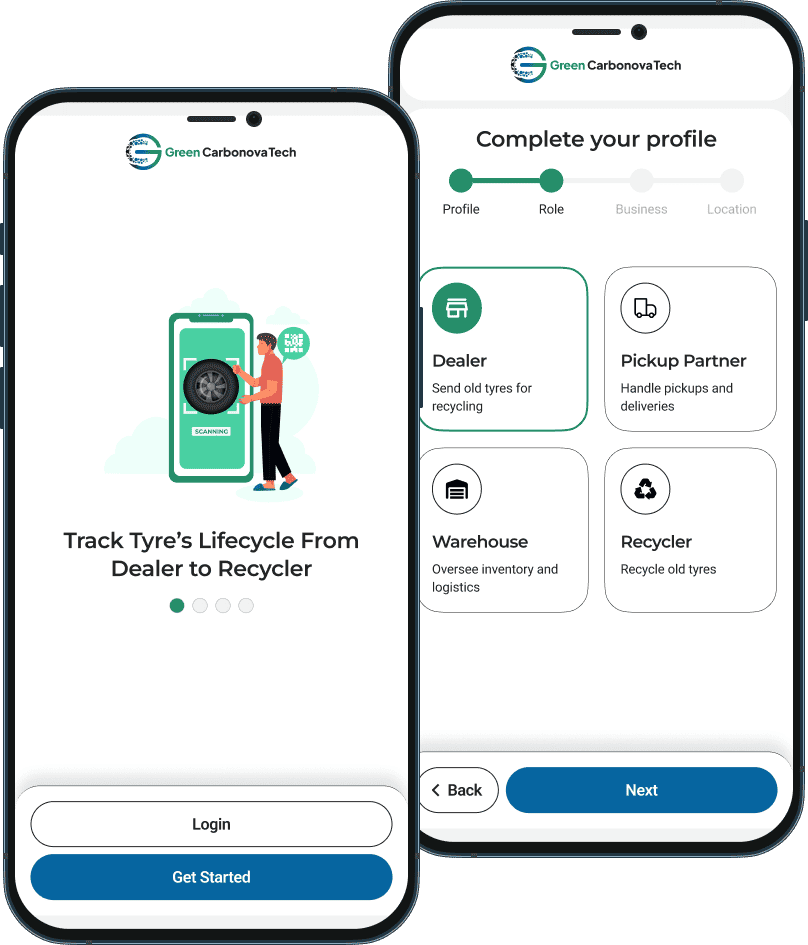 A platform to track tyres’ journey from dealer → warehouse → recycler and close the loop on tyre recycling.